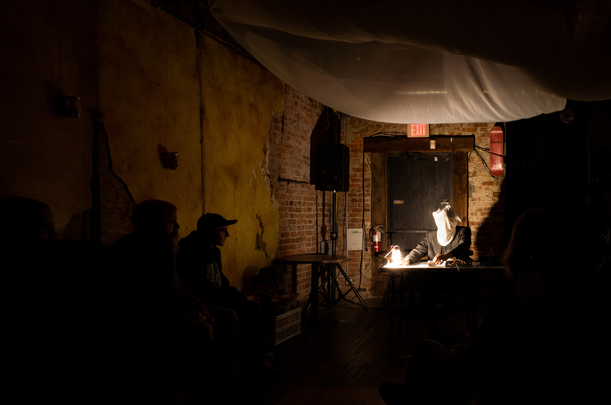 Pulling equally from the worlds of harsh noise and absurdist theatre, my performances build a sense of terror from simple imagery, muted text and an unpredictable barrage of silence and sound. I utilize these approaches within a critical context, building on my scholarly work to challenge oppressive formations embedded within the musical contexts I find myself in. Recent projects represent this aesthetic and thematic sensibility through a multi-media approach that includes writing, theatre, concerts, photography and film.